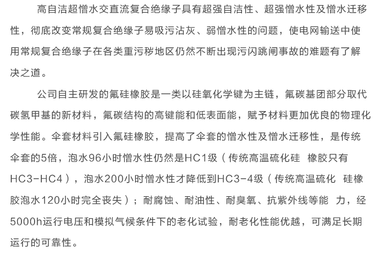 第二代高自潔超憎水交直流複合絕緣子